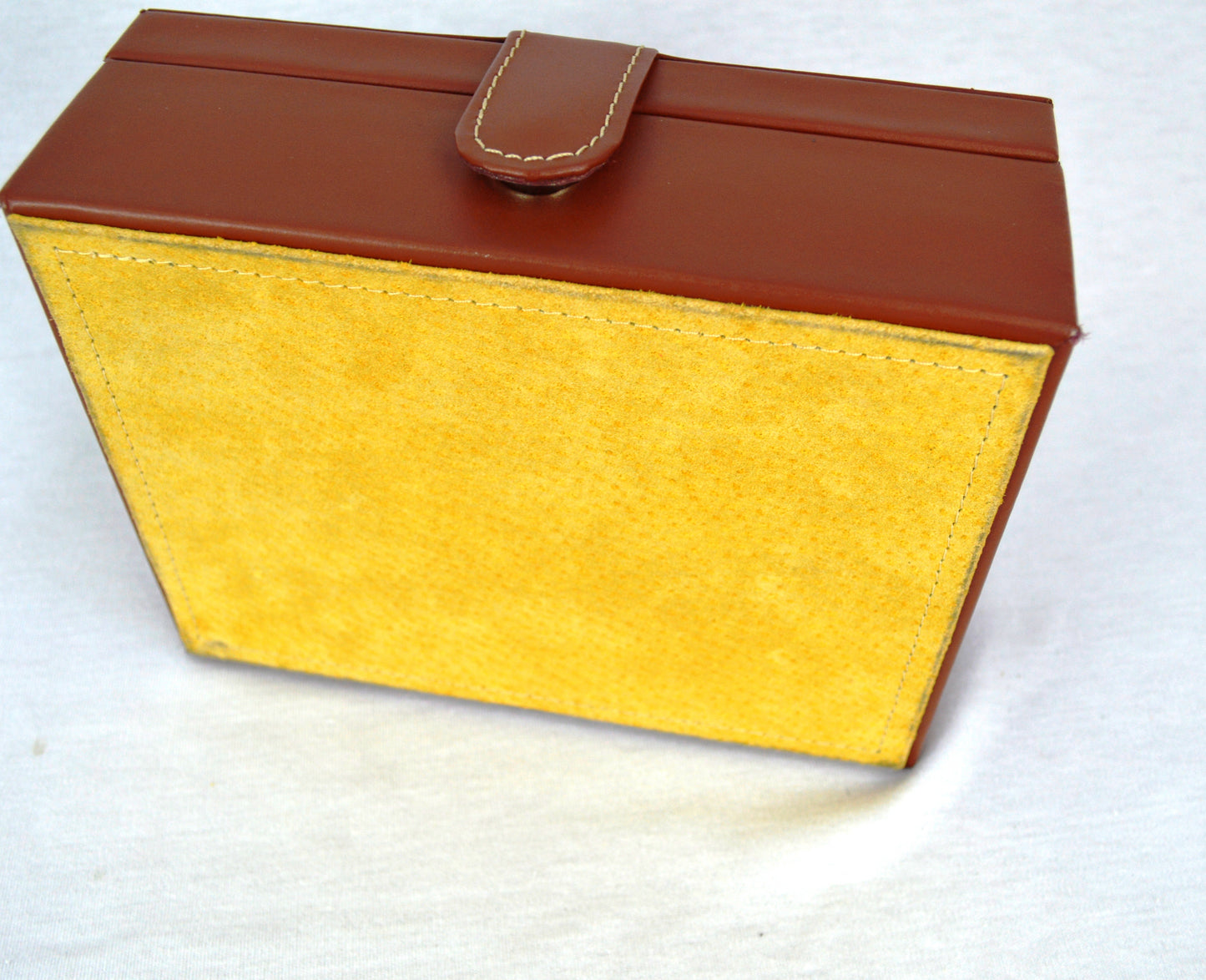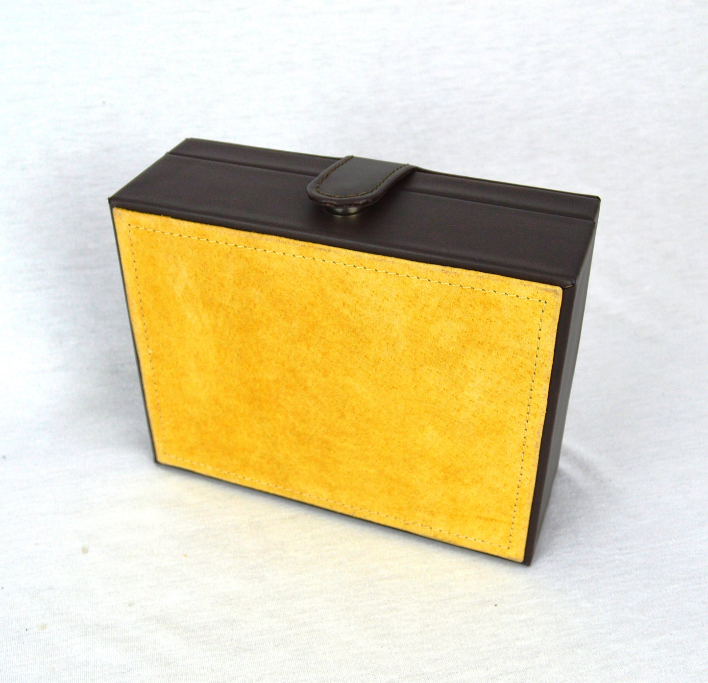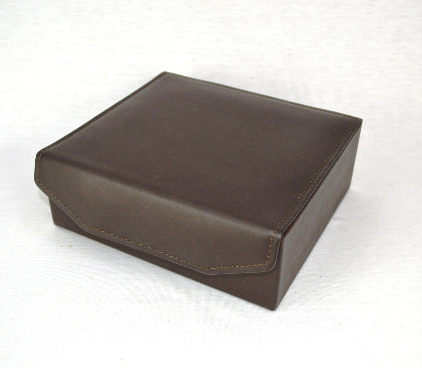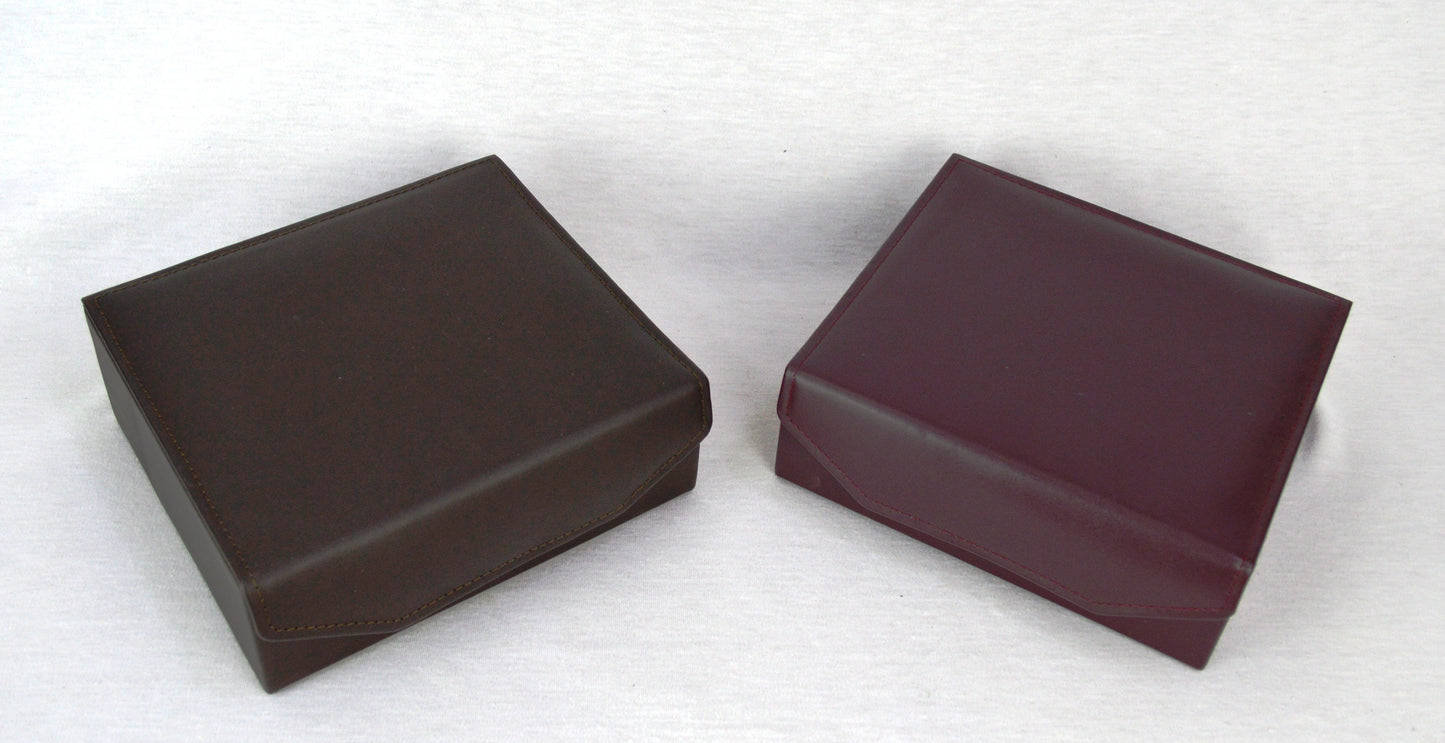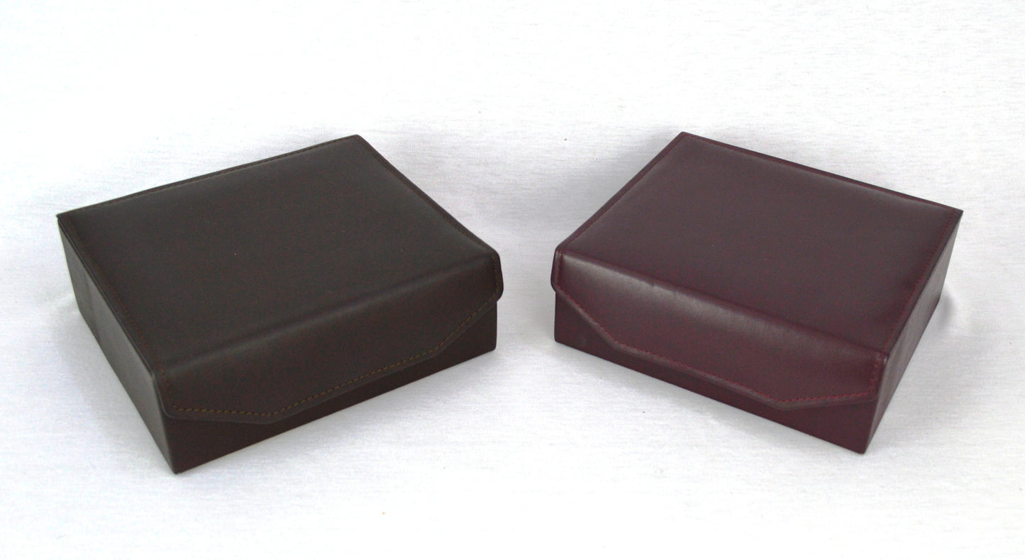 Caja de madera mdf. Corte piel vacuno, forro piel porcino.