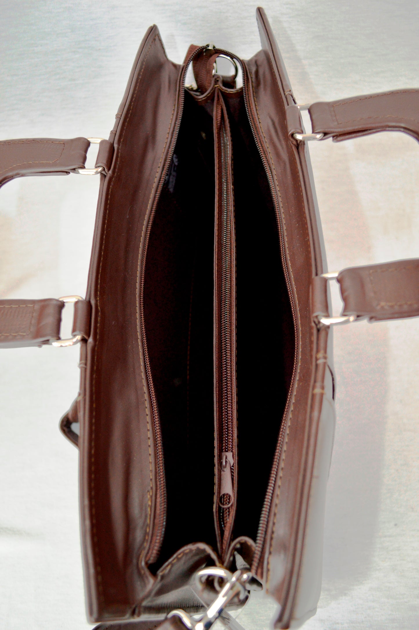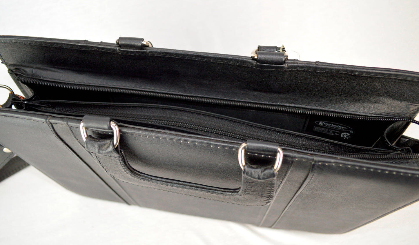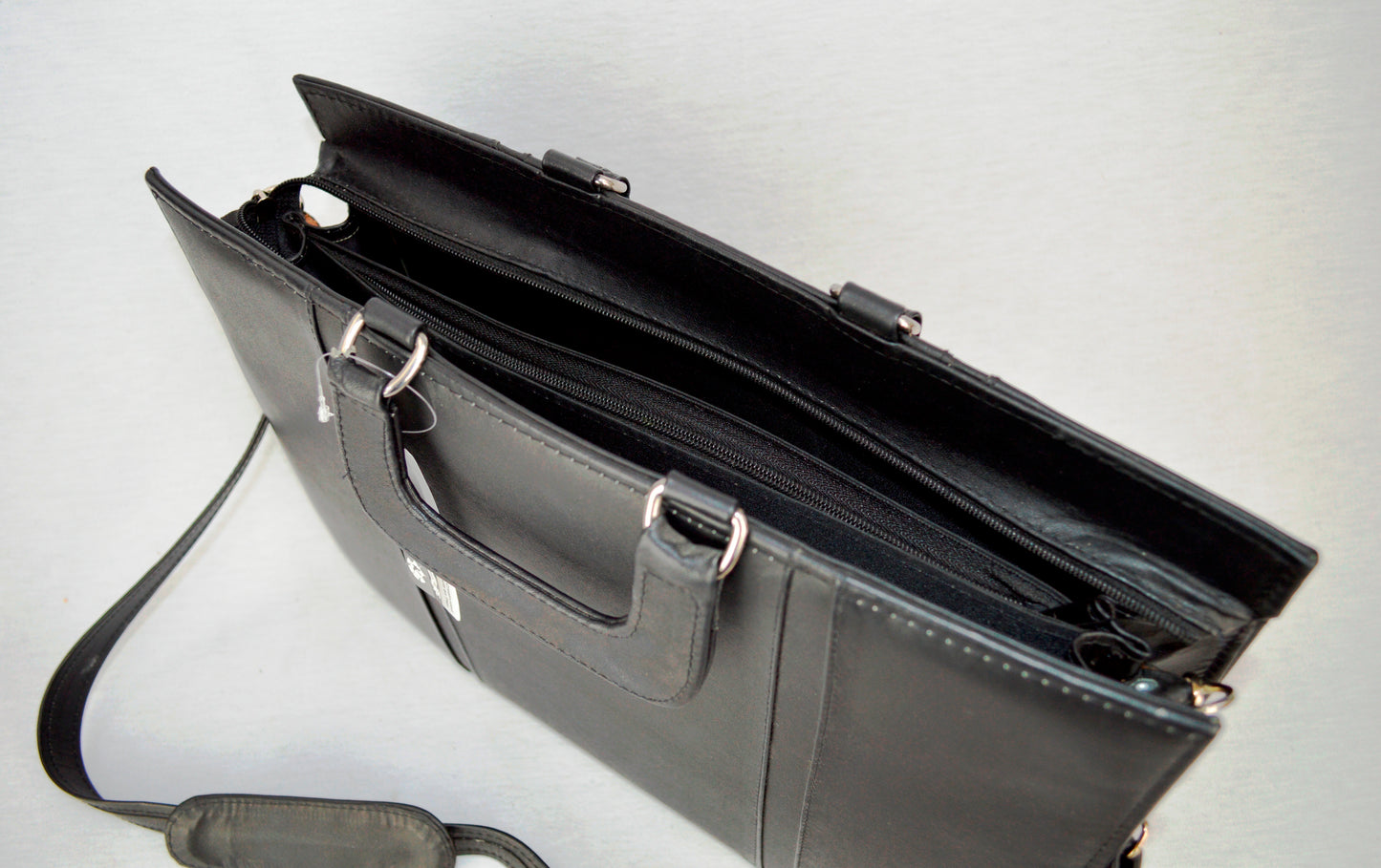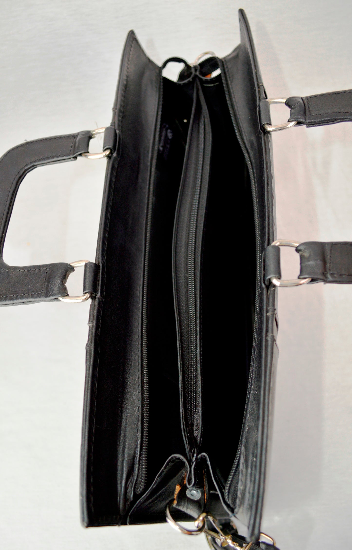 Piel vacuno. Con asa de mano y asa para colgar al hombro. Diferentes separaciones.