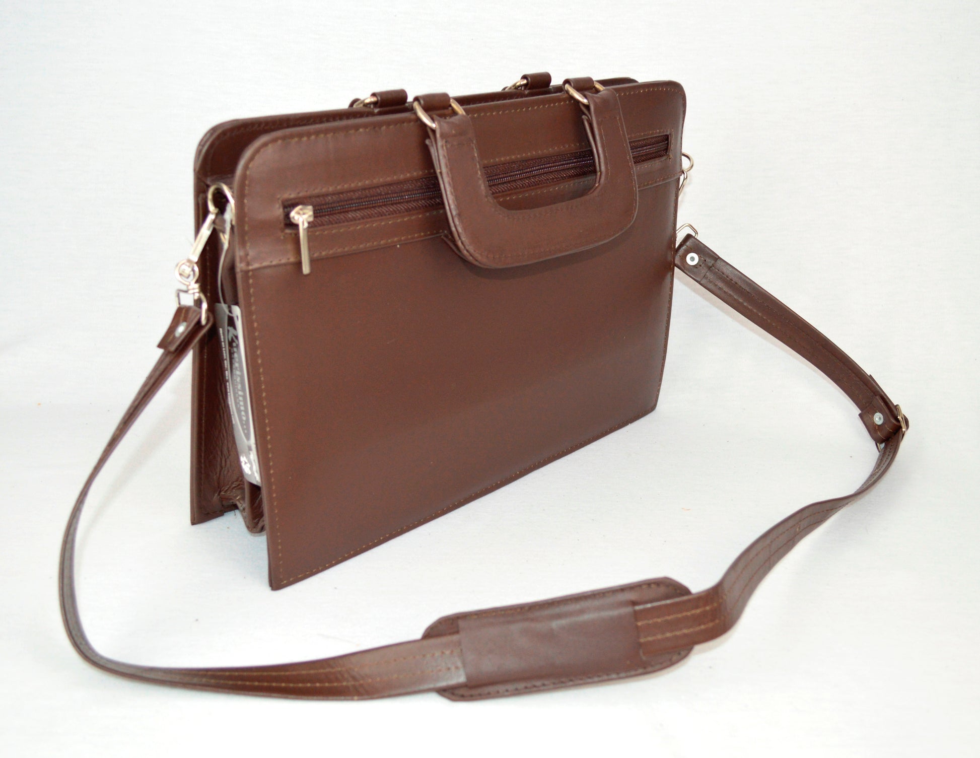 Piel Vacuno. Con asa de mano y asa para colgar al hombro.